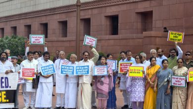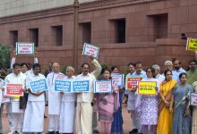 संसद भवनासमोर काँग्रेससह विरोधी पक्षाच्या खासदारांचे आंदोलन; “देशाला नेतृत्व हवे, मौन नको “