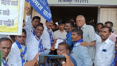 मैंदर्गी येथील दलित समाज जागेच्या प्रश्नी बहुजन समाज पार्टीकडून अक्कलकोट तहसील कार्यालयावर मोर्चा
