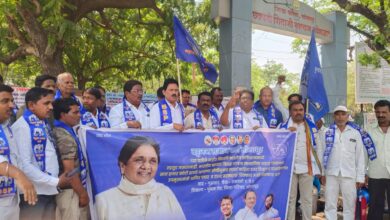 बहुजन समाज पार्टीच्या वतीने समाज कल्याण खात्याचा ७ हजार कोटी रुपयांचा निधी इतरत्र वळविल्याच्या निषेधार्थ निदर्शने