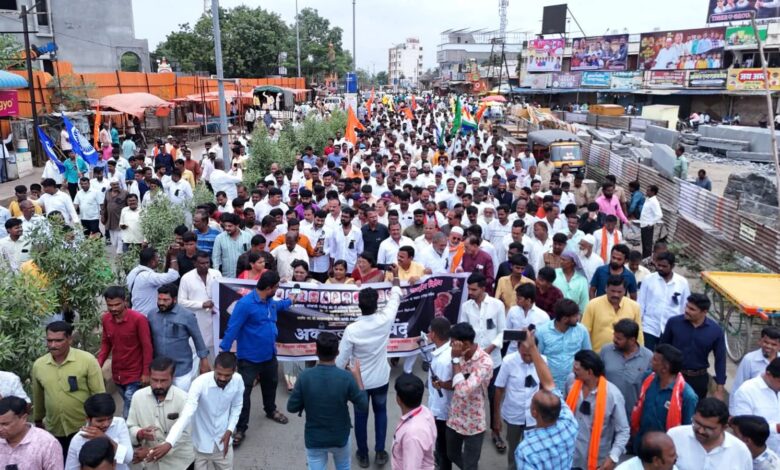 संभाजी ब्रिगेडचे प्रदेशाध्यक्ष प्रवीण गायकवाड हल्ला प्रकरणी अक्कलकोट कडकडीत बंद , निषेध मूक मोर्चा ,पोलीस प्रशासनावर टीकास्त्र
