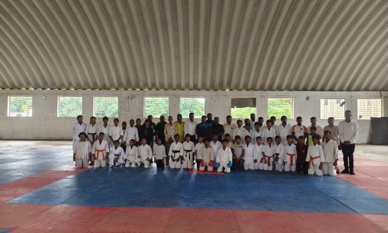 करमाळा ( प्रतिनिधी ) – येथील विद्या विकास मंडळ संचलित यशवंतराव चव्हाण महाविद्यालयाच्या पाठीमागील हॉलमध्ये जिल्हा व क्रीडा सेवक संचालनालय अंतर्गत करमाळा तालुकास्तरीय शालेय कराटे स्पर्धा या यशवंतराव चव्हाण महाविद्यालयांमध्ये दिनांक 16 /08/ 2025 रोजी आयोजित करण्यात आल्या होत्या. या स्पर्धेच्या उद्घाटन प्रसंगी प्रमुख पाहुणे म्हणून विद्या विकास मंडळाचे विश्वस्त व यशवंतराव चव्हाण महाविद्यालयाचे उपप्राचार्य संभाजी किर्दाक सर उपस्थित होते. या स्पर्धेसाठी पुरुषोत्तम माने भैरवनाथ विद्यालय जातेगाव , नागनाथ बोळगे वीर शिवाजी महाराज क्लब करमाळा, सागर शिरस्कर त्रिमूर्ती क्लब करमाळा , अमोल माळी उपस्थित होते. या स्पर्धेसाठी पंच म्हणून संतोष झिंजाडे, अभिषेक कुतवळ व सुरज वायकूळे यांनी काम पाहिले. करमाळा तालुका क्रीडा समन्वयक रामकुमार काळे , तालुक्यातील क्रीडा प्रशिक्षक व विद्यार्थी मोठ्या संख्येने उद्घाटन प्रसंगी उपस्थित होते.