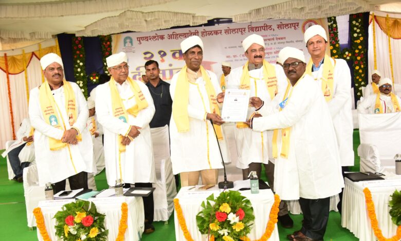 पुण्यश्लोक अहिल्यादेवी होळकर सोलापूर विद्यापीठात धानय्य कौटगीमठ यांचा गौरवपूर्ण सत्कार