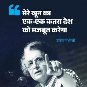 31 ऑक्टोबर 1984 रोजी त्यांच्या हत्येमुळे देशभरात शोककळा पसरली, परंतु त्यांचे कार्य, धैर्य आणि देशनिष्ठा आजही प्रत्येक भारतीयासाठी प्रेरणादायी आहे. इंदिरा गांधी या खऱ्या अर्थाने भारताच्या “आयर्न लेडी” होत्या, ज्या स्त्रीने जगाला दाखवून दिले की दृढ इच्छाशक्ती आणि नेतृत्वाने देश घडवता येतो.