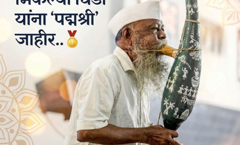 पालघर -आदिवासी संस्कृतीचा आणि वारली कलेचा अविभाज्य भाग असलेल्या ‘तारपा’ वाद्याला आपल्या श्वासाने जिवंत ठेवणारे, पालघर जिल्ह्याचे सुपुत्र भिकल्या लाडक्या धिंडा यांना केंद्र सरकारतर्फे प्रतिष्ठेचा ‘पद्मश्री’ पुरस्कार जाहीर झाला आहे. प्रजासत्ताक दिनाच्या पूर्वसंध्येला या पुरस्कारांची घोषणा होताच पालघर जिल्ह्यात आणि कला विश्वात आनंदाची लाट पसरली आहे.