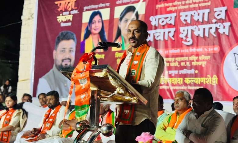 कुंभारी जिल्हा परिषद गटातील भाजपाच्या उमेदवार श्रुती गेनसिद्ध भोरगुंडे व धोत्री पंचायत समिती गणातील भाजपाच्या उमेदवार शिल्पा महेश बिराजदार यांच्या प्रचाराचा शुभारंभ धोत्री येथे आमदार सचिन कल्याणशेट्टी यांच्या उपस्थितीमध्ये शनिवारी सायंकाळी करण्यात आला .यावेळी जाहीर सभेचे आयोजन करण्यात आले होते. या सभेमध्ये आमदार सचिन कल्याणशेट्टी बोलत होते. यावेळी कुंभारी जिल्हा जिल्हा परिषद गटातील भाजपाच्या उमेदवार श्रुती भोरगुंडे व धोत्री पंचायत समिती गणातील उमेदवार शिल्पा बिराजदार , भारतीय जनता पार्टी युवा मोर्चा जिल्हाध्यक्ष महेश बिराजदार आदींनी मनोगत व्यक्त केले. याप्रसंगी सरपंच वैशाली पाटील , शिवानंद दरेकर , ईराप्पा पाटील , दयानंद बिराजदार , भीमाण्णा चौगुले , लक्ष्मण बिराजदार ,सैपन शेख , भिमशा पाटील ,योगीराज दहिटणे , नंदकुमार बिराजदार , दिलीप नंदनगे ,श्रीशैल मठपती , आप्पासाहेब बिराजदार ,महादेव पाटील , शिवशरण बिराजदार , शरणाप्पा पाटील , वीरपाक्षी घेरडे , अनिल रामपुरे , चन्नवीर होनमुरगे , सुरेंद्र बिराजदार , राजकुमार बिराजदार , मल्लू चिवडशेट्टी , रमजान मियावाले , धानप्पा दहिटणे , श्रीकांत बिराजदार , सुधीर चौगुले ‘ महादेव होटकर , आदि सह धोत्री , रामपूर , कर्देहळळी , कुंभारी , सिर्फनळी , वडगाव दर्गनहळळी येथील नागरिक महिलावर्ग मतदार मोठ्या संख्येने उपस्थित होते.