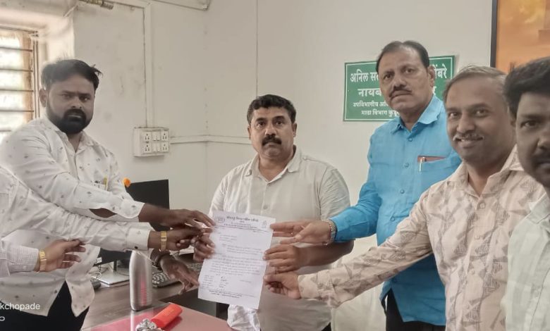 ऊस पिकाच्या नुकसानीबाबत काँग्रेसकडून कुर्डूवाडी प्रांताधिकाऱ्यांना निवेदन