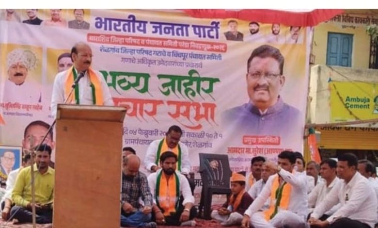 धाराशिव जिल्हा परिषदेवर भाजपाचाच झेंडा फडकून भाजपची सत्ता आननार आहे असा ठाम विश्वास भाजपाचे नेते मा.आ. सुजितसिंह ठाकूर यांनी व्यक्त केला आहे. परंडा तालुक्यातील शेळगाव गटात आज बुधवारी जिल्हा परिषदेचे भाजपा उमेदवार शरद रामदास पवार व पं स. गणातील उमेदवार एकनाथ वायसे यांच्या प्रचारार्थ भाजपा आमदार सुरेश धस व भाजपाचे नेते माजी आमदार सुजितसिंह ठाकूर यांची शेळगाव येथे जाहीर सभा संपन्न झाली. यावेळी ते बोलत होते. यावेळी आ. सुरेश धस यांनी शेळगाव जिल्हा परिषद गटाचे उमेदवार शरद पवार व पंचायत समिती गणाचे उमेदवार एकनाथ वायसे यांना निवडणूकीत विजयी करा असे आवहान मतदारांना केले.