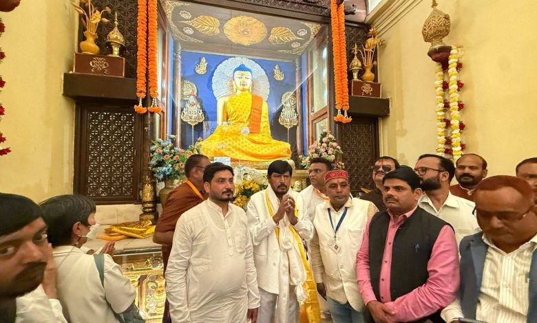 बौद्ध संमेलनपूर्वी ना. रामदास आठवले यांनी महाबोधी महाविहार येथे भगवान बुद्धांचे मनोभावे दर्शन घेतले. यावेळी भगवान बुद्धांच्या पवित्र अस्थिकलशाचे शिरसावंद्य दर्शन न. रामदास आठवले यांनी घेतले.