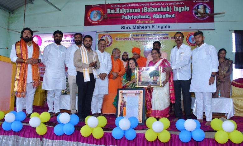 राज्यातील ३२ गुणीजनांना मान्यवरांच्या हस्ते राष्ट्रीय गुणीजन पुरस्कारांनी सन्मानीत करण्यात आले. कै. कल्याणराव इंगळे तंत्रनिकेतन मधील गुणवंत विद्यार्थ्यांचाही मान्यवरांच्या हस्ते सत्कार करण्यात आला. श्री.स्वामी समर्थ रुग्णालयात जनरल फिजीशीयन डॉ.स्वप्निल हिप्परगी, डॉ.रोहित कुंभार, नेत्ररोग तज्ञ डॉ.स्वप्ना हिप्परगी, डॉ.राजेश मलंग, दंतरोग तज्ञ डॉ.नम्रता पवार यांच्या वतीने सर्वरोग निदान आरोग्य शिबीराच्या माध्यमातून १४७ रुग्णांची तपासणी करून औषधोपचार व पुढील सेवाभावी मार्गदर्शन करण्यात आले. यावेळी संतोष पराणे, खाजप्पा झंपले, सुनिल पवार, बाळासाहेब एकबोटे, स्वामी हिरेमठ, डॉ.हिरण्णा पाटील, कोल्हापूरचे स्वामी भक्त सुहास पाटील, माळशिरस ग्रामसेवक संघटनेचे तालुका अध्यक्ष विजयसिंह माने-देशमुख, प्रा.शिवशरण अचलेर, सचिन किरनळ्ळी, बाबा सुरवसे, मुंबईचे स्वामी भक्त सुंदर जाधव, शरण मठाचे विश्वस्त बसवराज आलमद, चंद्रकांत सोनटक्के, मनोज जगताप , श्रीकांत झिपरे, अरविंद पाटील, मनोज इंगुले, श्रीशैल गवंडी, रमेश शिंदे , अंकूश केत, ज्ञानेश्वर भोसले, राजू एकबोटे, रामलिंगय्या स्वामी, सागर गोंडाळ, विश्वनाथ देवरमनी , नंदकुमार जगदाळे, प्रसाद पाटील , श्रीशैल गवंडी आदींसह ज्ञात अज्ञात आप्तेष्ट व कै.कल्याणराव इंगळे तंत्रनिकेतनचे प्राचार्य नागनाथ जेऊरे आदींसह शिक्षक शिक्षकेत्तर कर्मचारी व विद्यार्थी विद्यार्थीनी मोठ्या संख्येने उपस्थित होते. कार्यक्रमाचे सूत्रसंचालन महाविद्यालयाची विद्यार्थिनी शिवानी भोसले यांनी केले, तर आभार प्रदर्शन प्रा.काशिनाथ घुरघुरे, प्रा.शिवशरण अचलेर यांनी मानले.