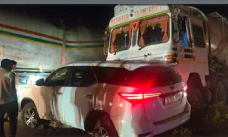 ही धडक इतकी भीषण होती की फॉर्च्युनरच्या चालकाच्या बाजूचा पूर्ण भाग दबलेला आहे.