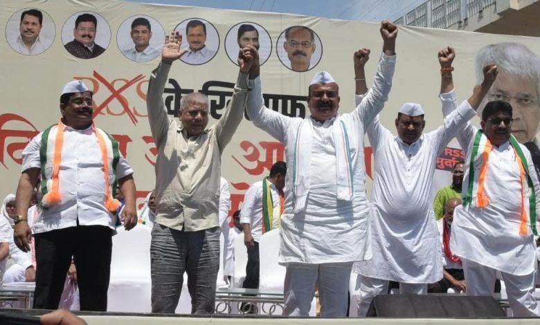नागपूर – भारतीय राष्ट्रीय कॉंग्रेस, वंचित बहुजन आघाडी व इतर समविचारी पक्षांच्या वतीने आज संविधान चौक, नागपुर येथे आरएसएस मुख्यालयावर “विशाल जन आक्रोश संयुक्त मोर्चा” चे आयोजन वंचित बहुजन आघाडीचे प्रमुख अॅड. प्रकाश उर्फ बाळासाहेब आंबेडकर व महाराष्ट्र प्रदेश कॉंग्रेस कमिटीचे अध्यक्ष . हर्षवर्धन सपकाळ यांच्या नेतृत्वात करण्यात आले होते.
