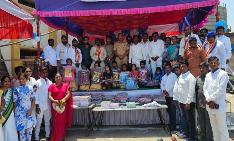वंचित बहुजन आघाडी शहर व तालुक्याच्या वतीने डॉक्टर बाबासाहेब आंबेडकर ,महात्मा ज्योतिबा फुले महात्मा बसवेश्वर महाराज यांच्या संयुक्त जयंती निमित्त शैक्षणिक साहित्य आणि महाप्रसाद वाटप